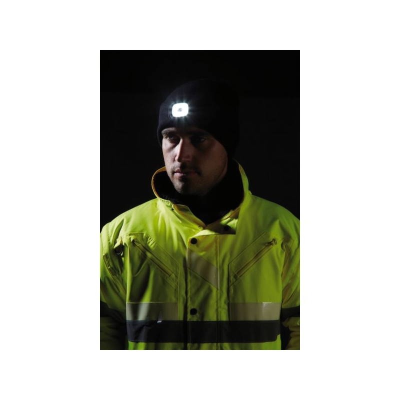 Tricot 100% acrylique. Lumière LED amovible et rechargeable par USB. Coloris : bleu marine, noir, jaune, orange Taille : unique