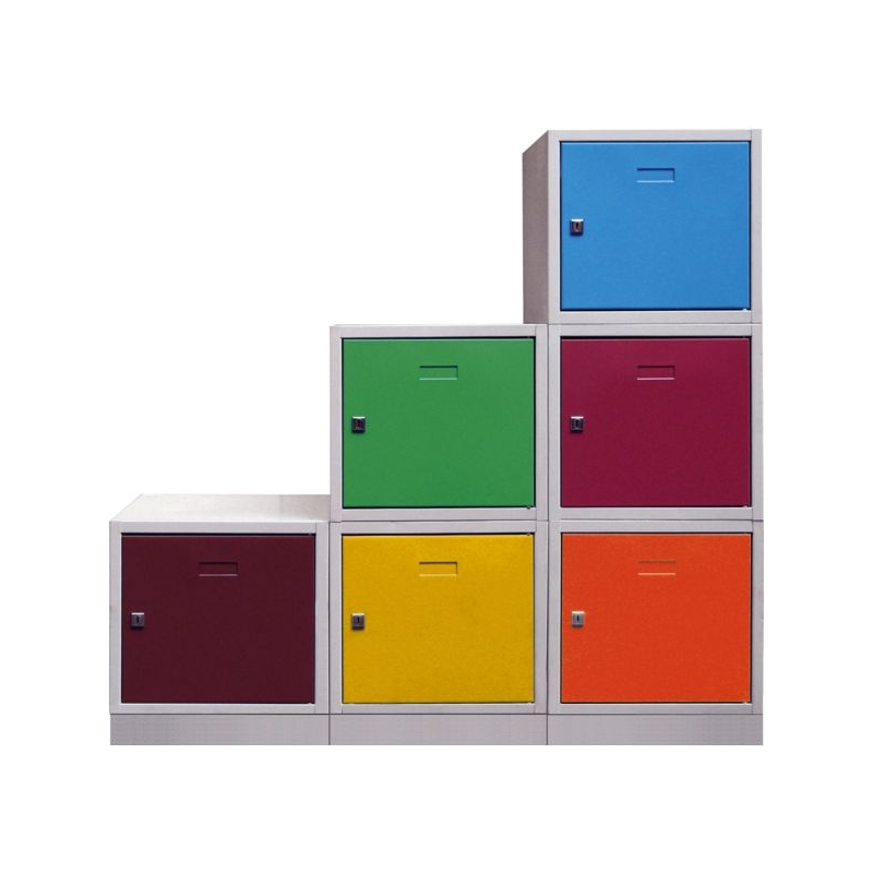 Permet de créer des ensembles multicases adaptés à vos espaces. Colonne de 5 cases maximum posées sur un socle. Porte à ouverture 180° avec porte-étiquettes, serrure à clé et aération arrière. Assemblage vertical par clavette et fixation horizontale par vis. Hauteur casier/socle : 380/80 mm l x P : 380 x 380 mm Coloris : corps et porte gris Nombreux coloris sur consultation.