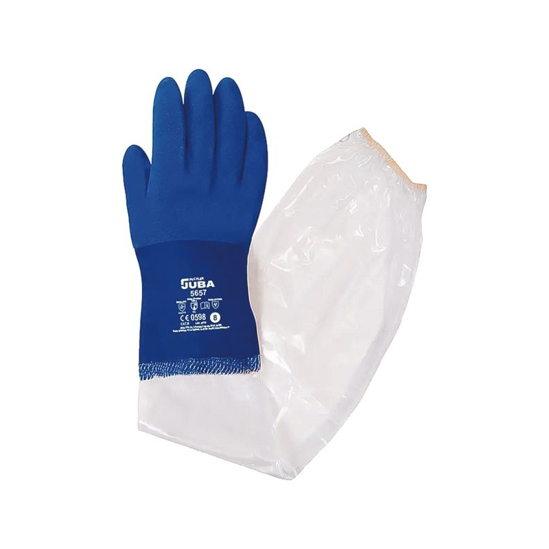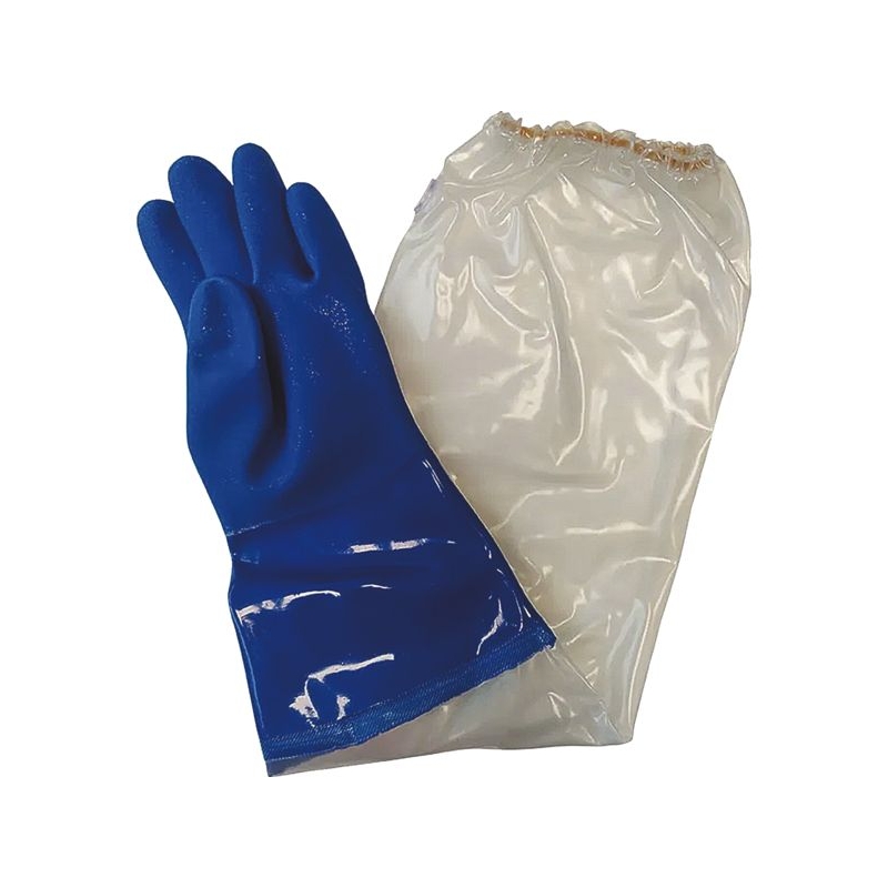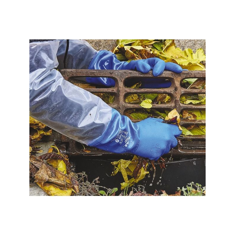 Enduction totale en PVC avec pellicule vinylique (+ résistant pour des surfaces huileuses). Support coton interlock, finition rugueuse sur toute la main. Manchette thermoscellée maintenue par élastique, finition lisse. Environnement : chimique, huileux, humide, sec Classe Alcool primaire/hydrocarbure saturé/base inorganique. Applications métiers : pêche, manipulation de produits chimiques, assemblage, approvisionnement en eau, travaux de peinture, nettoyage d'instruments et de machines, agriculture Longueur : 63,50 cm Taille : 7 à 9 Norme : CE Cat III - EN 388 (4121) - EN 374-1 (AJK) - EN 374-2