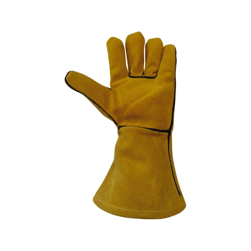 Cuir croûte, doublure tissu. Environnement : sec Applications métiers : travaux de soudure peu agressifs, travaux de maintenance en général, travaux mécaniques Longueur : 34 cm Épaisseur : 1,1 mm Taille : 6 à 10 Norme : CE Cat II - EN 388 (3133X) - EN 407 (413X4X) - EN 12477 type A
