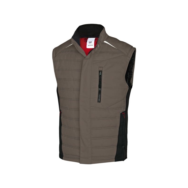 65% polyester 35% coton, 250 g/m². Matériau très robuste. Coupe moderne et ergonomique. Doublure matelassée ouatinée. Col officier, fermeture à glissière double curseur sous rabat, éléments réfléchissants, empiècements stretch sur les côtés pour une plus grande liberté de mouvement, bas de dos prolongé. 1 poche poitrine avec fermeture à glissière, grandes poches latérales fermées par bouton-pression. Entretien : lavage industriel 15797 8B Coloris : bleu nuit, bleu roy, gris anthracite, noir, noix, vert, kaki, marron Taille : S à 3XL Norme : CE Cat I - EN 15797