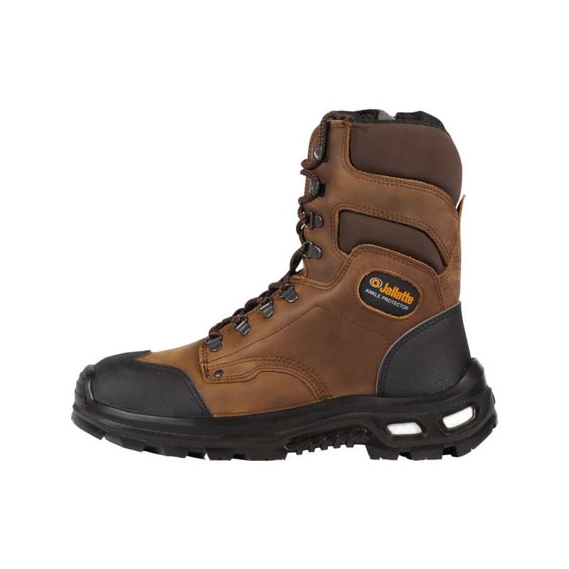 Tige en cuir pleine fleur hydrofuge finition pull-up. Excellente imperméabilité, pas de traversée d’eau après 7h de test. Très bonne respirabilité (évacuation de la sudation bien au dessus des exigences normatives). Renfort de protection au niveau des malléoles pour amortir les chocs latéraux. Remontée de la semelle PU sur l’avant pied pour plus de protection. Doublure de la jambe en tissu tri-dimensionnel. Matelassage de haut de tige ergonomique en mousse souple et compacte, pour plus de confort au niveau des malléoles et du tendon d'Achille. Fermeture par laçage sur 6 paires de passe-lacets et 2 paires de crochets métalliques. Lacet 150 cm. Languette en cuir, matelassée pour un meilleur confort sur le cou-de-pied, associée à deux soufflets latéraux pour éviter l’intrusion de particules à l’intérieur de la chaussure. Première de propreté Memory en polyuréthane et mousse à mémoire de forme thermo-sensible pour amortir les points de pression et l’absorption des chocs talonniers, anatomique et perforée. Semelle d'usure Synergy-BTP en bi-composant PU et insert en E-TPU, Infinergy® de BASF pour un amorti exceptionnel et une capacité extraordinaire à restituer plus de 55% de l’énergie accumulée pendant la marche. Embout de sécurité en aluminium. Semelle antiperforation en acier inoxydable. Coloris : marron Pointure : 38 à 47 Norme : CE Cat II - EN ISO 20345 - S3 CI SRC